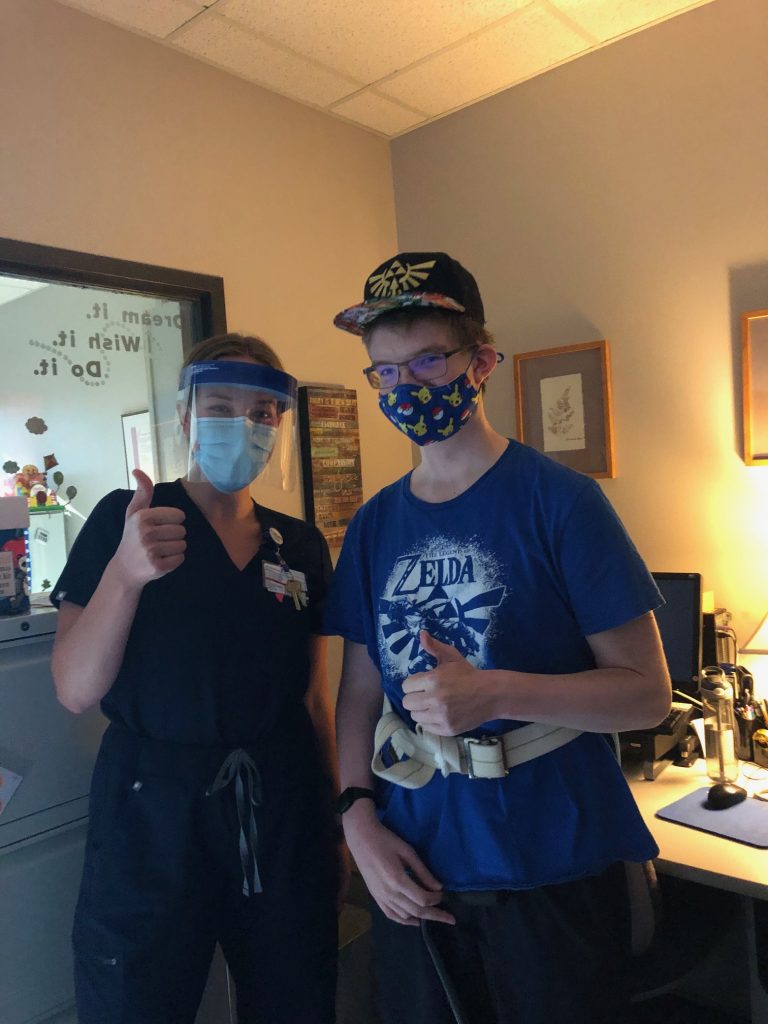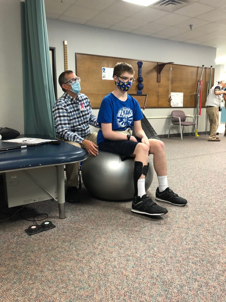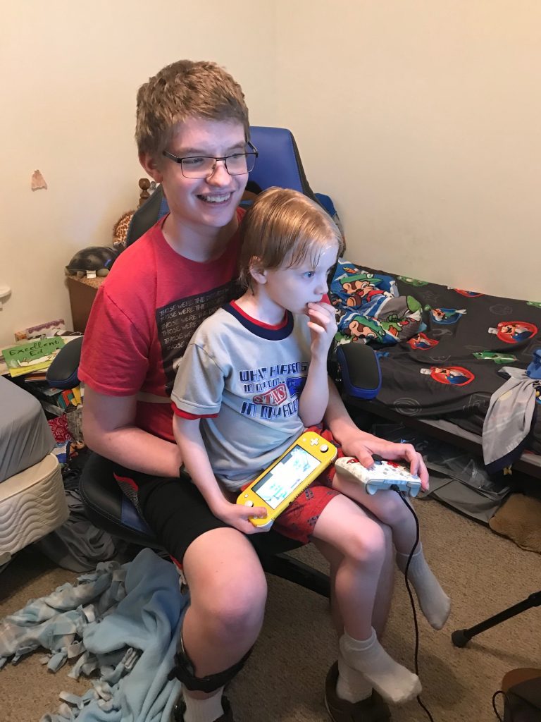 Occupational Therapy is focusing on strengthening the muscles in his right arm/hand and trying to work on getting some active movement.  Some of the exercises he is doing involve using his left hand to put an object into his right and then trying to perform a task with his hand or thumb. Some activities include grabbing and dropping a ball, pushing buttons on his game controller, playing around with a fidget cube and his favorite, trying to eat a pretzel rod fully with his right arm/hand.  The therapist will also be putting in prescriptions for two different hand braces to help keep Josh’s fingers straight.  One of the braces will be more of a stretching brace the other will be more functional.